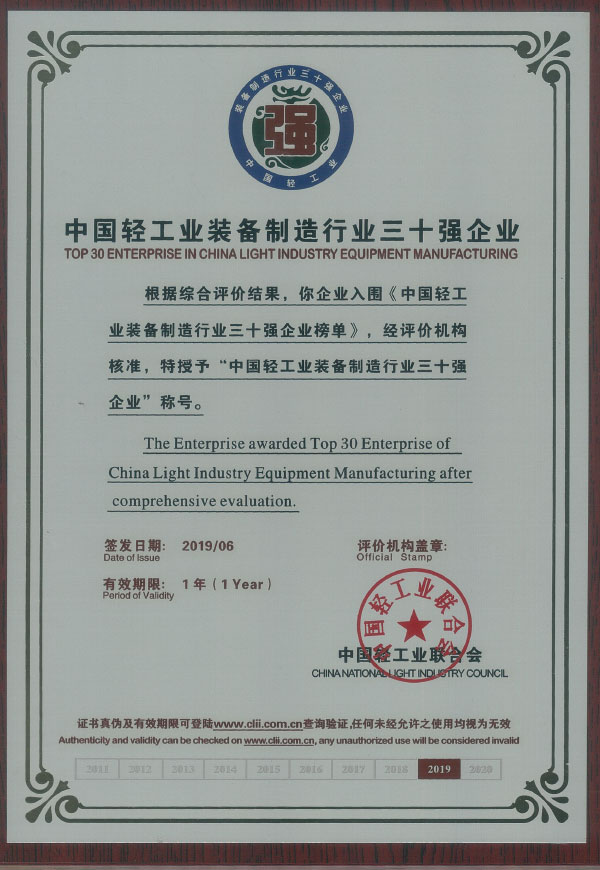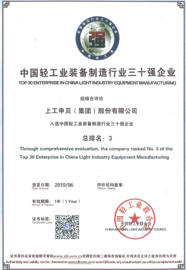Top 30 Enterprises of China Light Industry Equipment Manufacturing