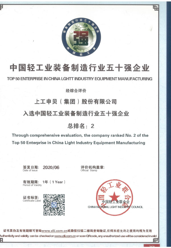 Top 50 Enterprises of Equipment Manufacturing in China Light Industry (Range 2)