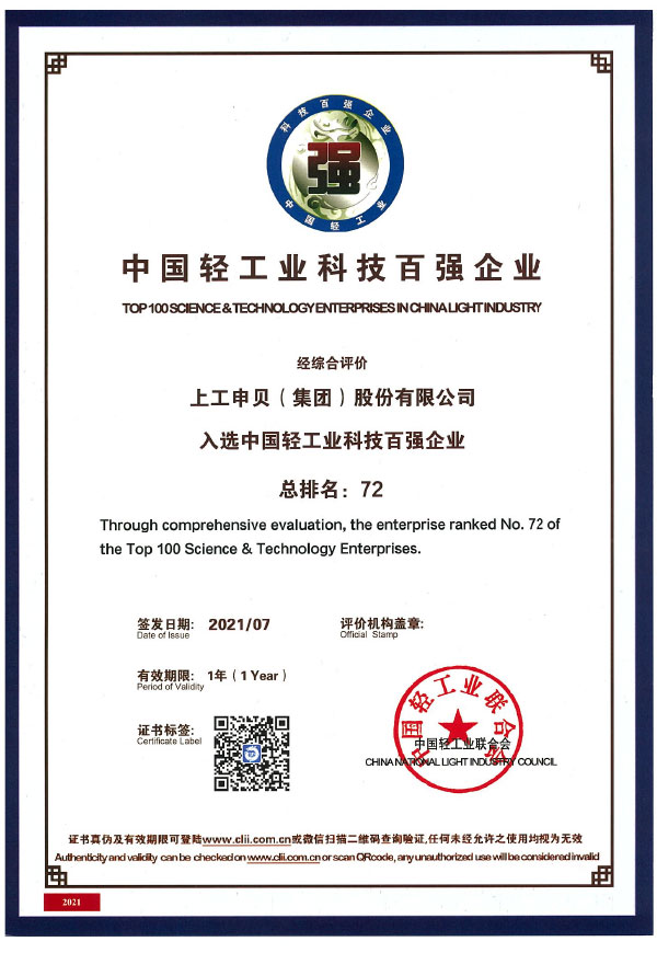 Top 100 Science and Technology Enterprises in China Light Industry (Range 72)