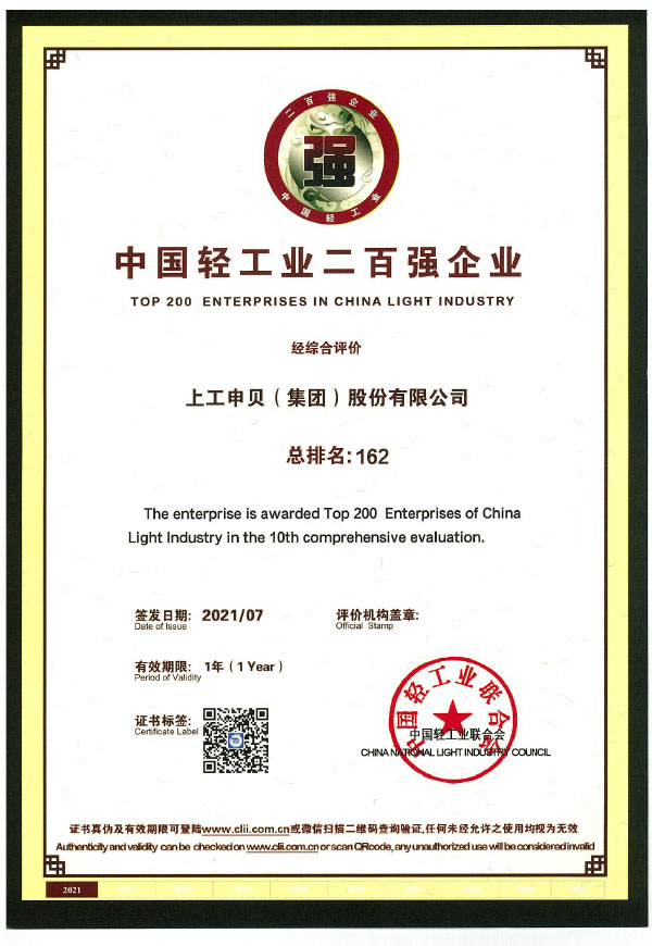 Top 200 Enterprises in China Light Industry (Range 162)