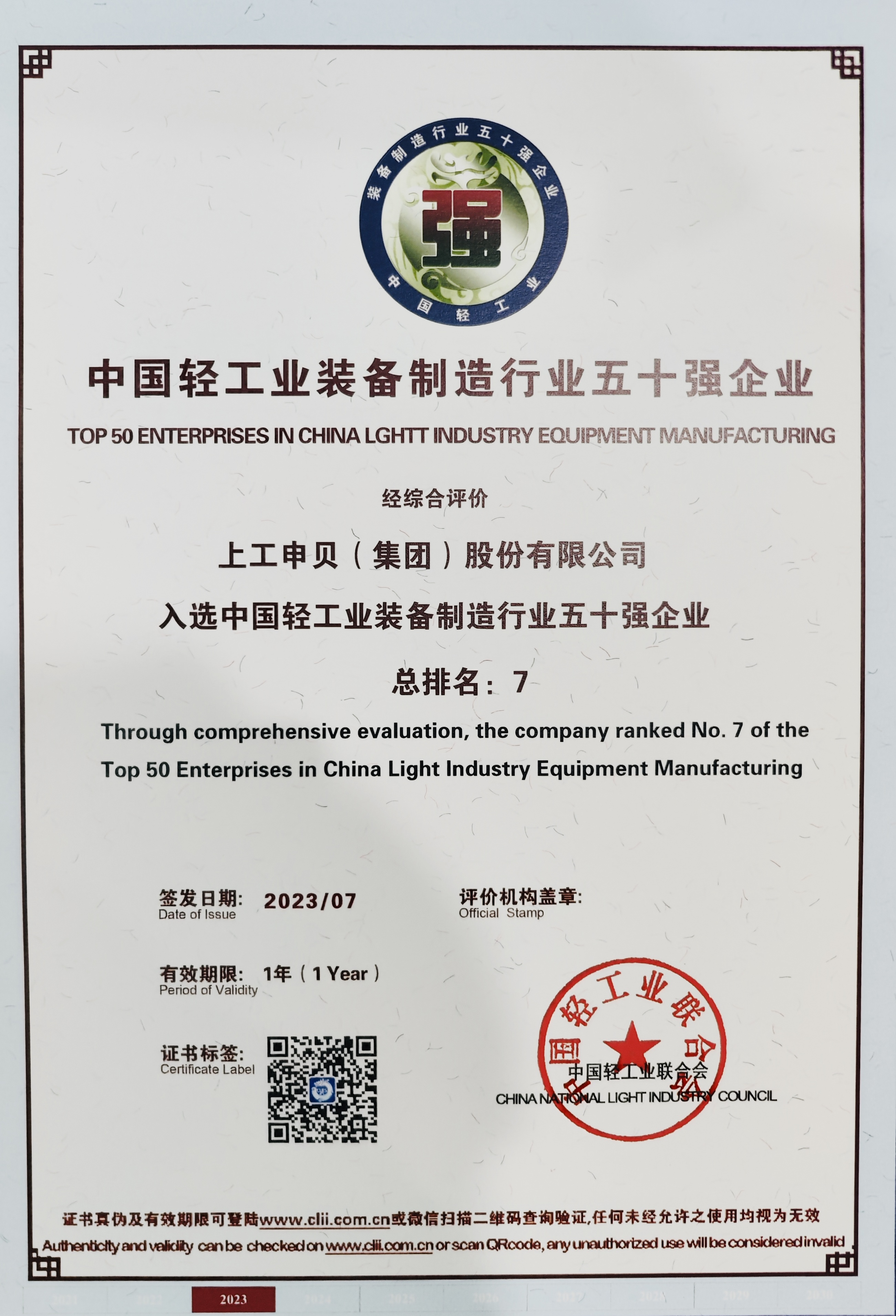伟德国际1949集团入选中国轻工业装备制造行业五十强企业
